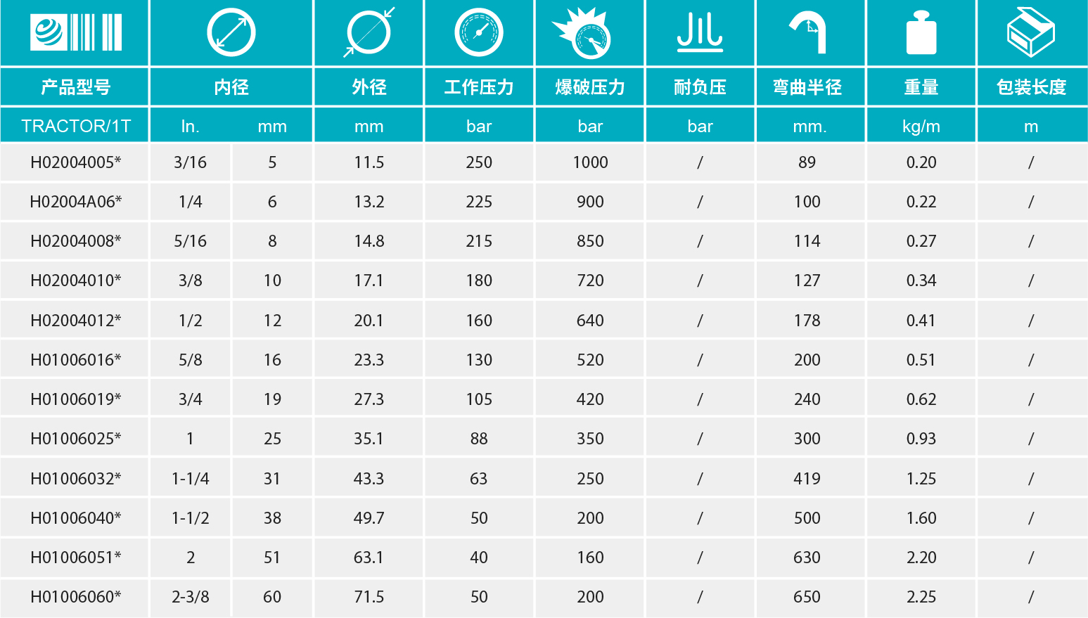 - 中低壓管,回油管??捎糜谳斔偷V物油、植物油和植物菜籽油,二醇和聚乙二醇基油,合成酯基油,乳化油,水。
