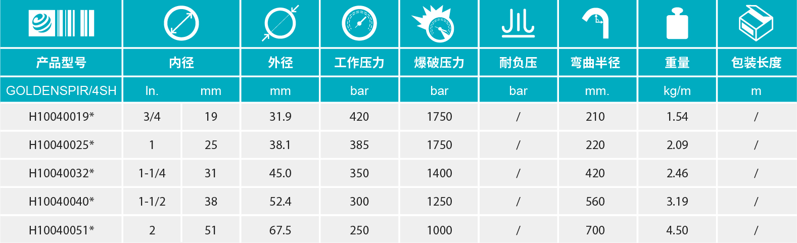 - 【增強層】:4層高抗拉鋼絲纏繞