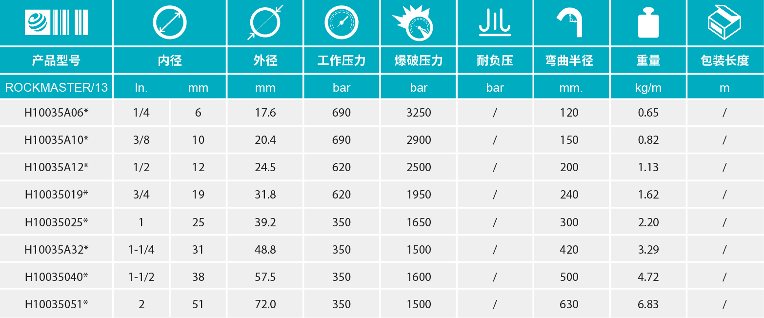 - 【增強(qiáng)層】:4層高抗拉鋼絲纏繞(DN6-31) 6層高抗拉鋼絲纏繞(DN38-51)