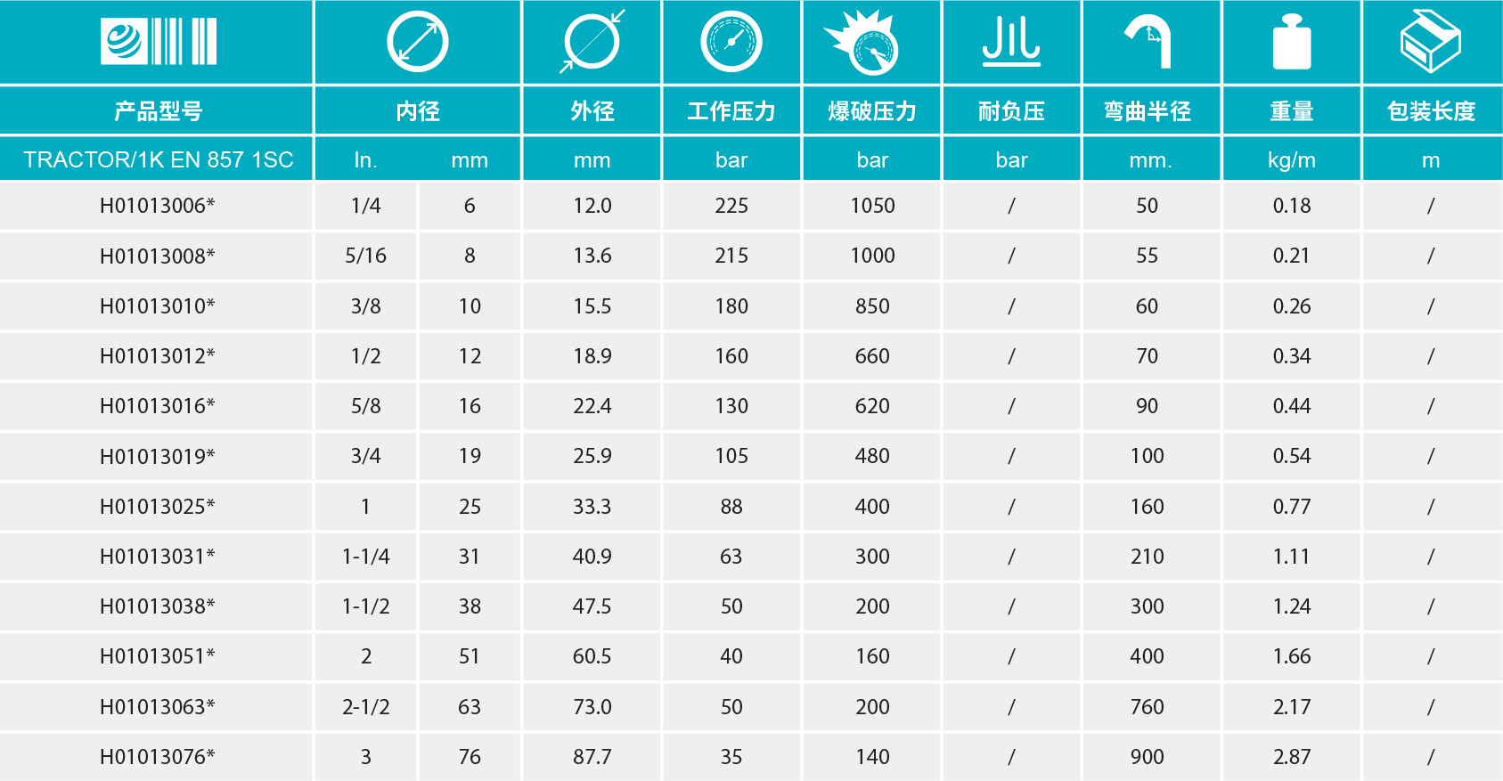 - 高柔韌性和彎曲半徑極小 重量輕 型號擴(kuò)展到DN76 大尺寸DN63-76通過MSHA認(rèn)證 至DN31均通過SAE 100 R4抗真空認(rèn)證