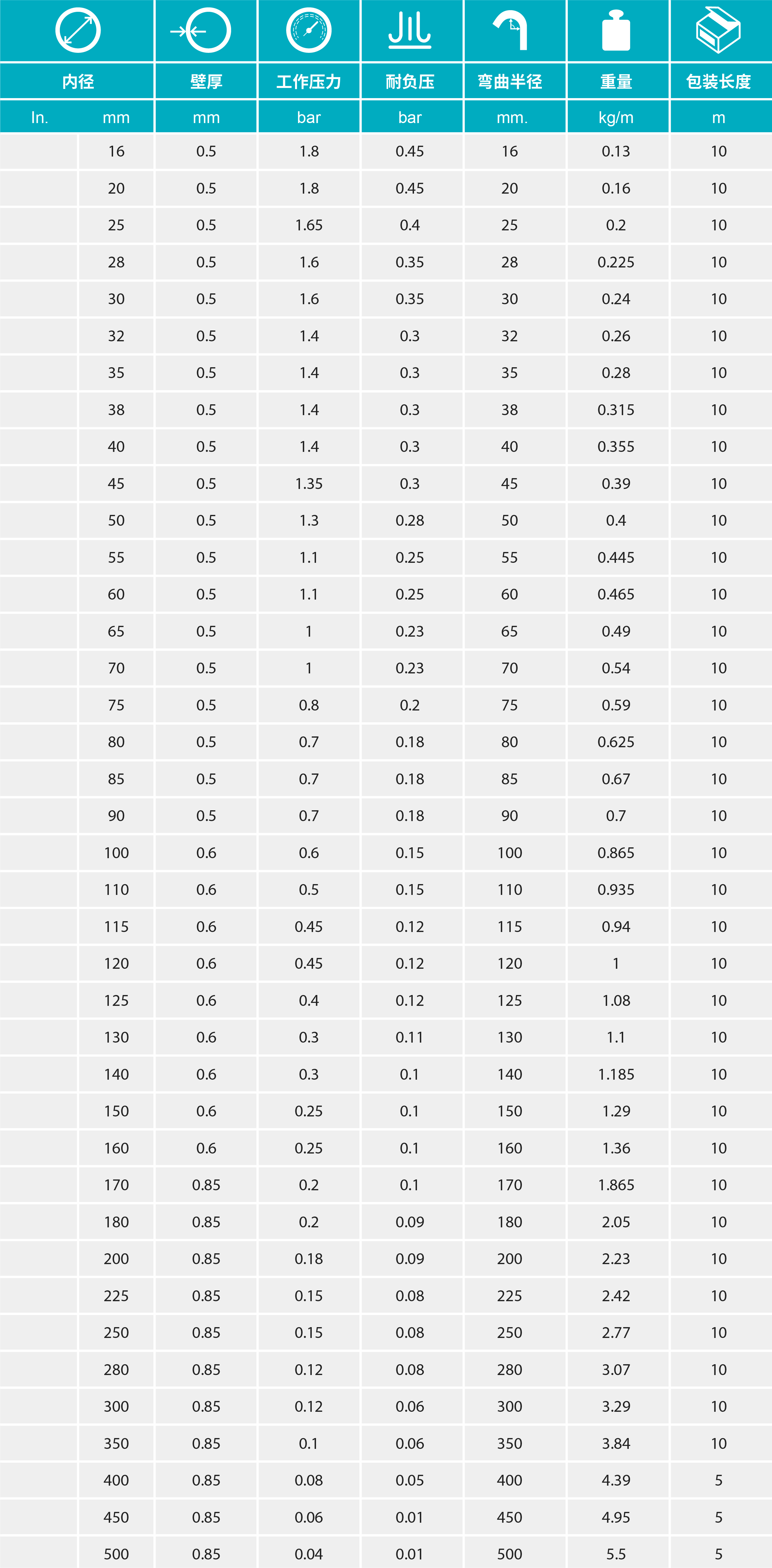 - 內(nèi)壁平滑以保證物料在管內(nèi)流動(dòng)順暢,具有良好的柔韌性