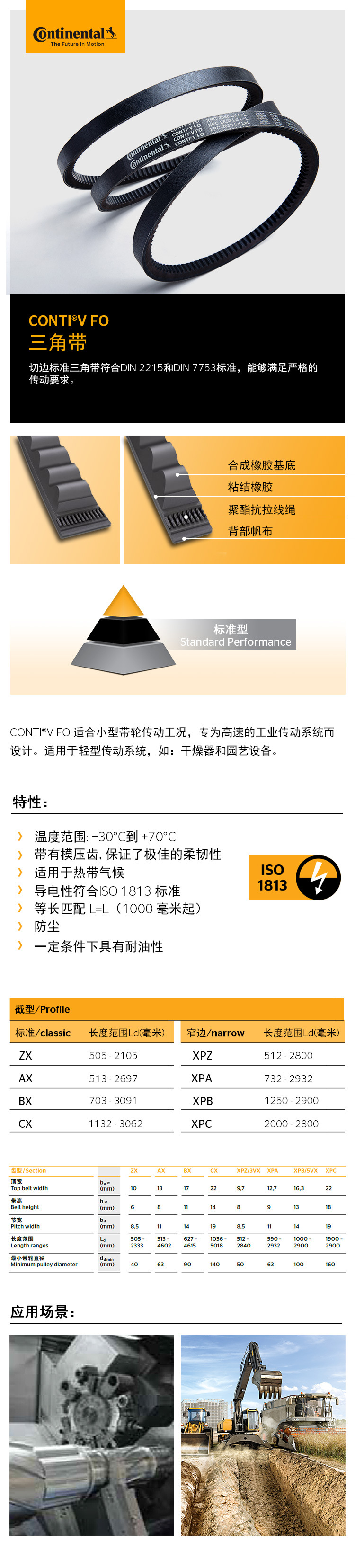 - 切邊標準三角帶符合DIN 2215和DIN 7753標準,能夠滿足嚴格的傳動要求,CONTI V FO 適合小型帶輪傳動工況,專為告訴的工業(yè)傳動系統(tǒng)而設計。適用于輕型傳動系統(tǒng),如:干燥器和園藝設備