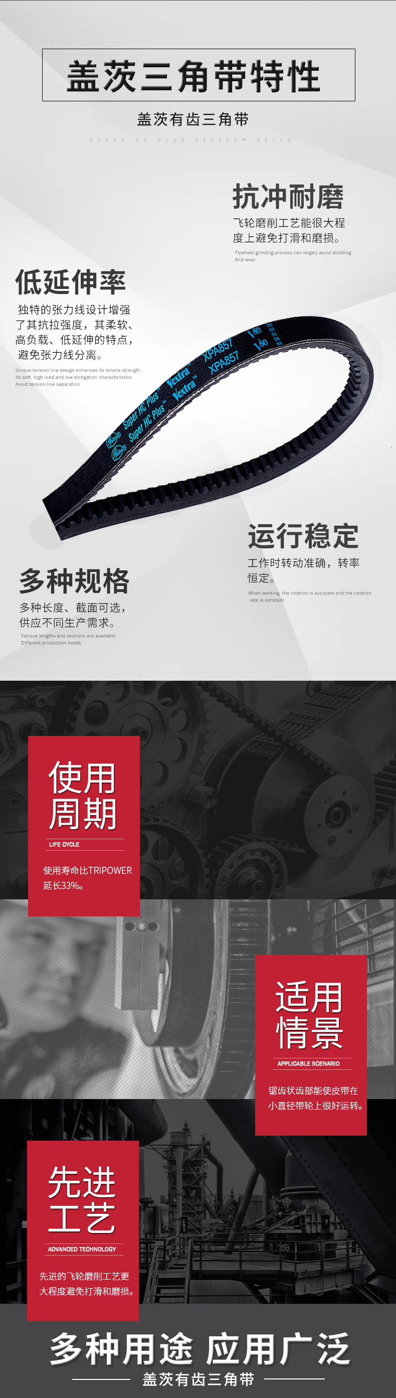 - 先進的飛輪磨削工藝,皮帶與帶輪接觸更加充分,大程度的避免打滑和磨損。