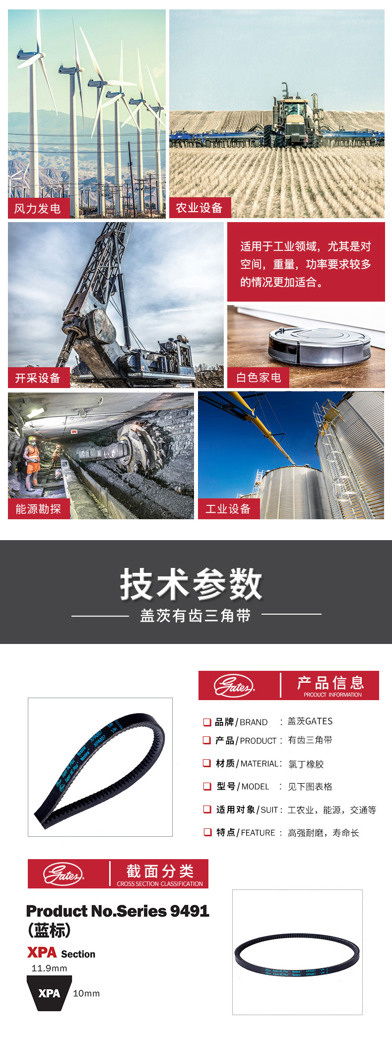 - 蓋茨GTAES 有齒三角帶 傳動帶 XPA757 工業(yè)皮帶