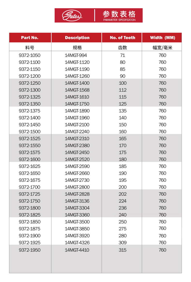 - 蓋茨GATES 保力強(qiáng) Polychain同步帶14MGT-2310