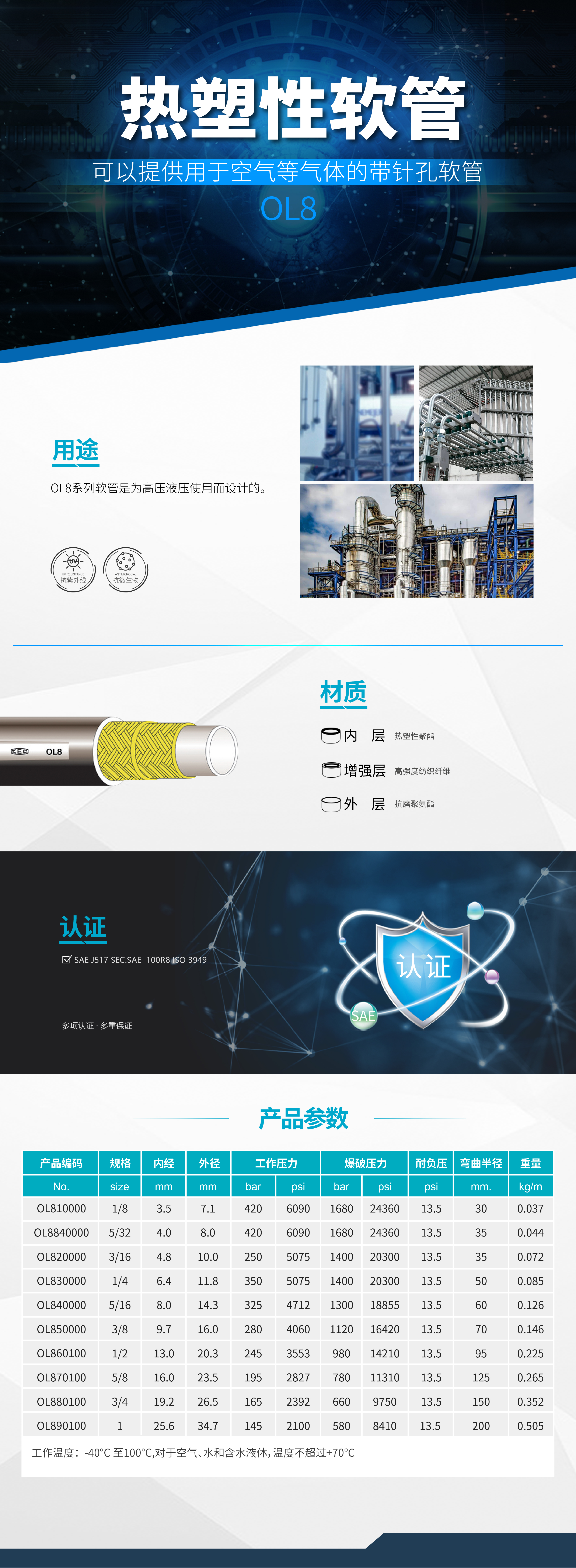 OL8系列軟管是為高壓液壓使用而設(shè)計(jì)的。