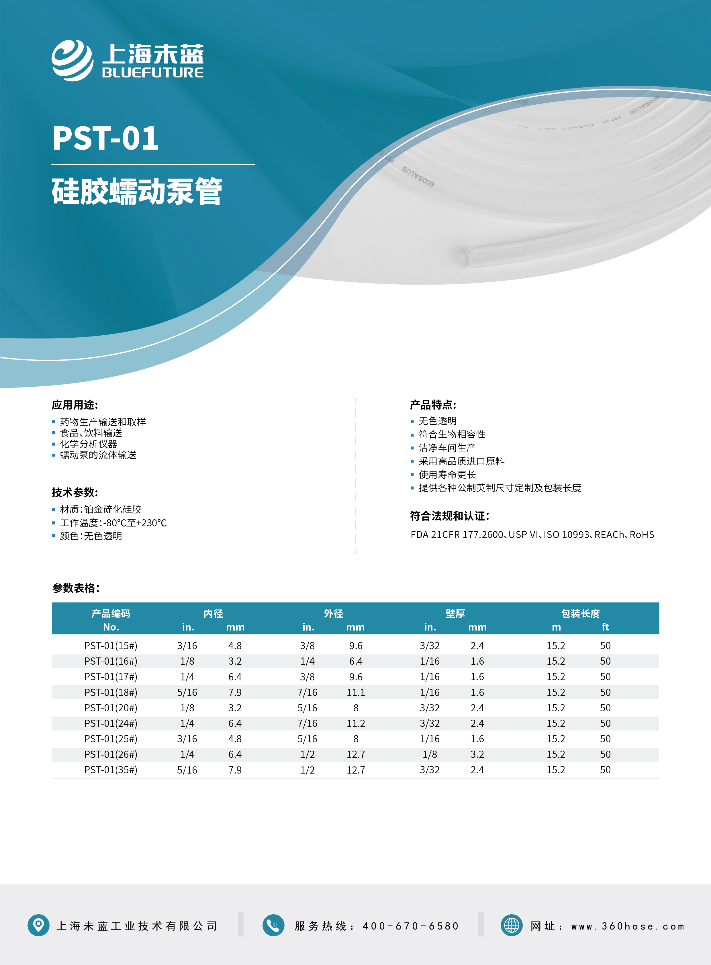 - FDA 21CFR 177.2600、USP VI、ISO 10993、REACh、RoHS