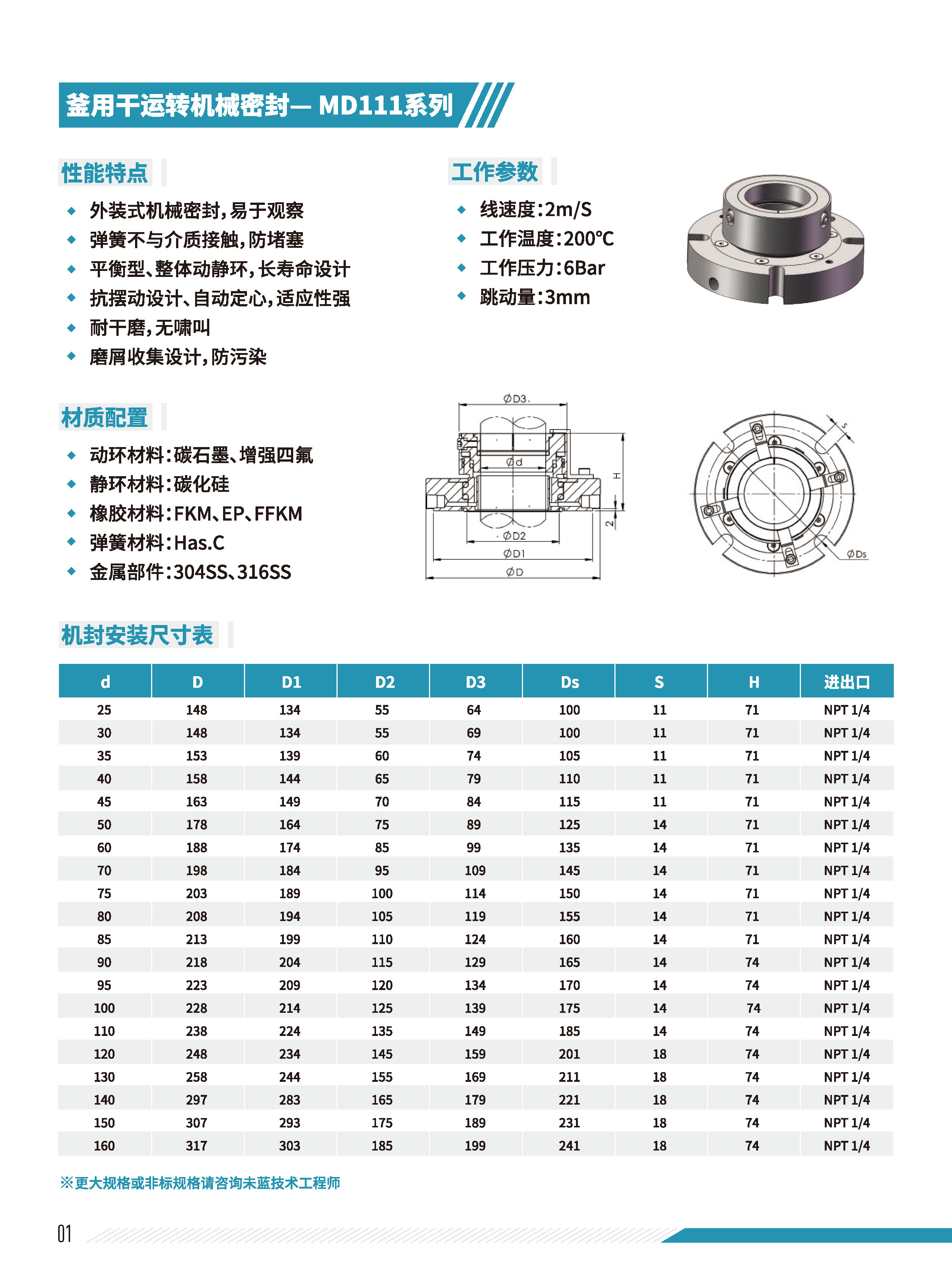- 平衡型、整體動(dòng)靜環(huán),長(zhǎng)壽命設(shè)計(jì)