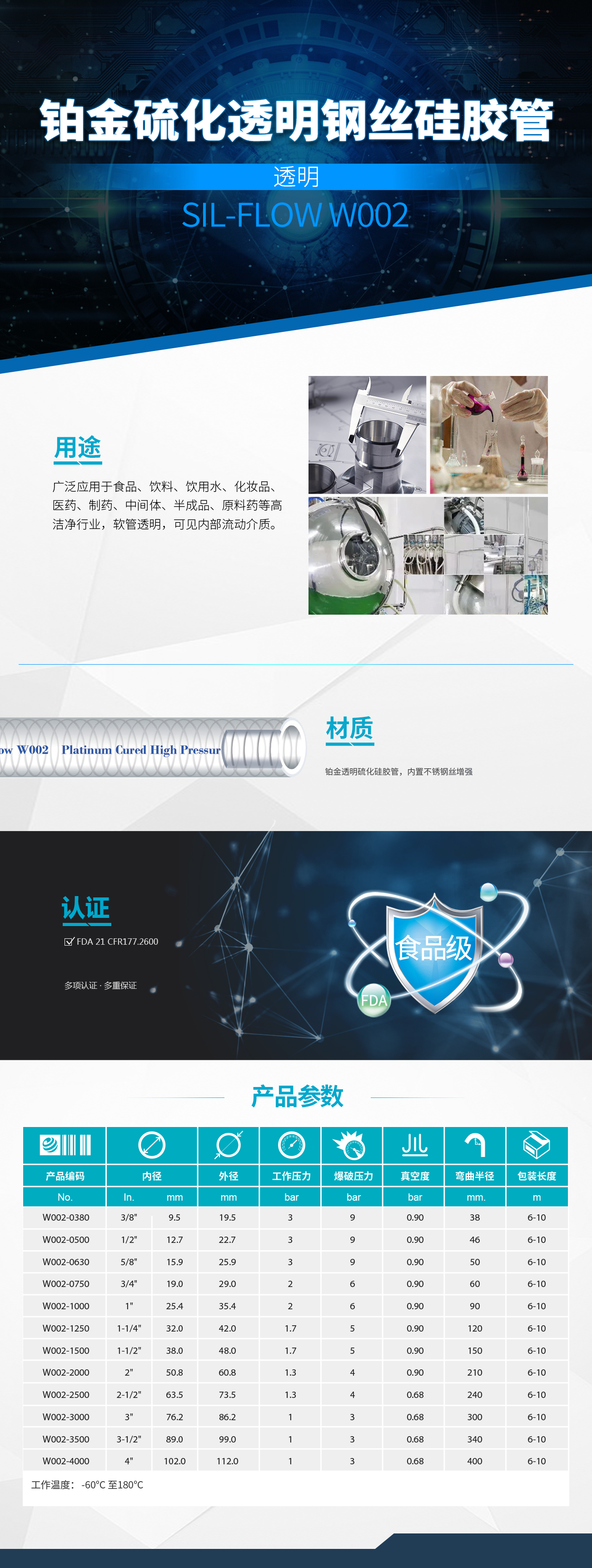 鉑金硫化透明鋼絲硅膠管 Sil-Flow W002