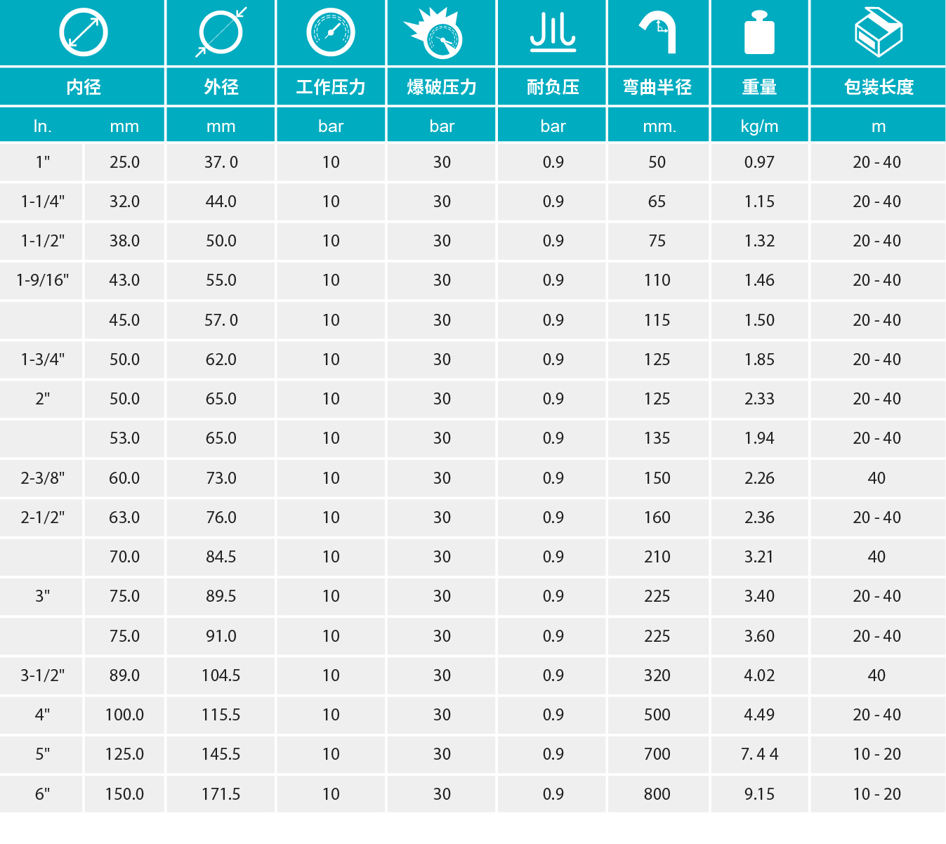 - 具有防扭結、耐磨損、抗污濁等特性,適用溫度范圍大