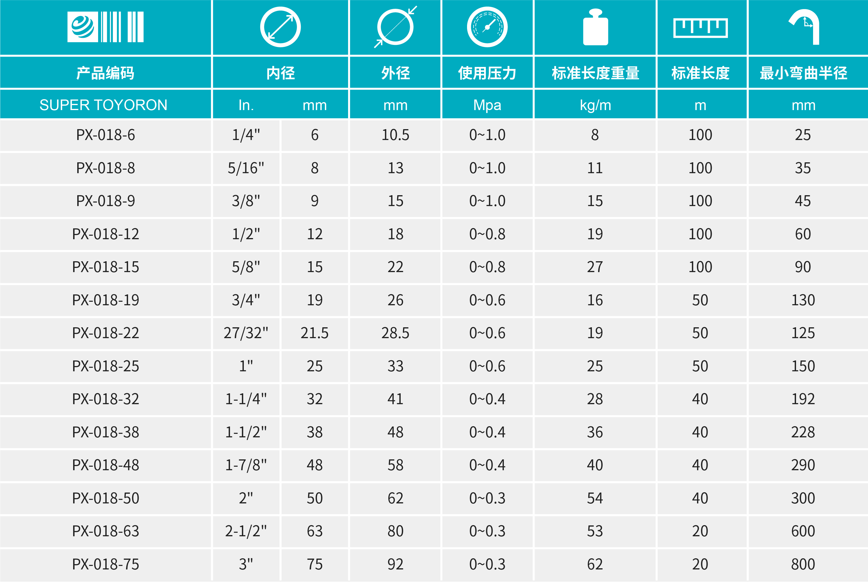- 由軟PVC制成的壓送等多目的耐壓膠管,比TOYORON膠管的耐油性出色,因此使用壽命長??捎米鞴S設(shè)備配管用膠管、各種機器組裝用膠管