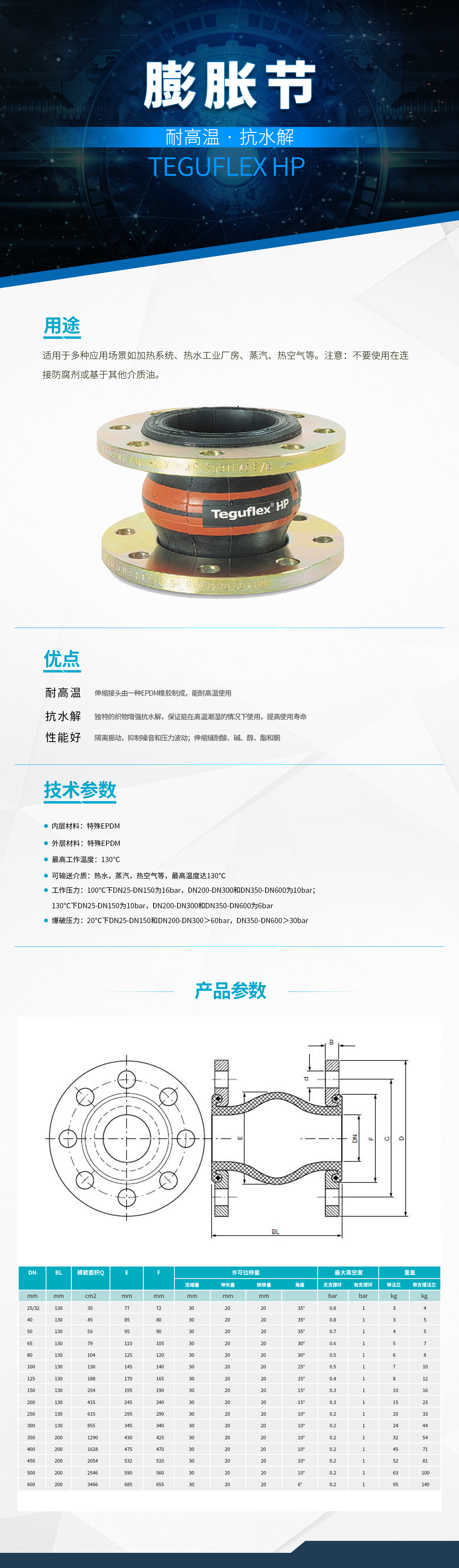 - 【爆破壓力】20℃下DN25-DN150和DN200-DN300>60bar,DN350-DN600 >30bar