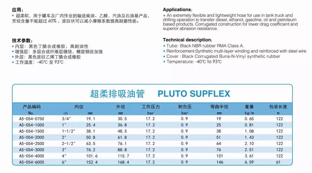 超柔軟排吸油管 PLUTO SUPFLEX