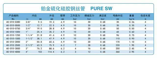 A5-010鉑金硫化硅膠鋼絲管