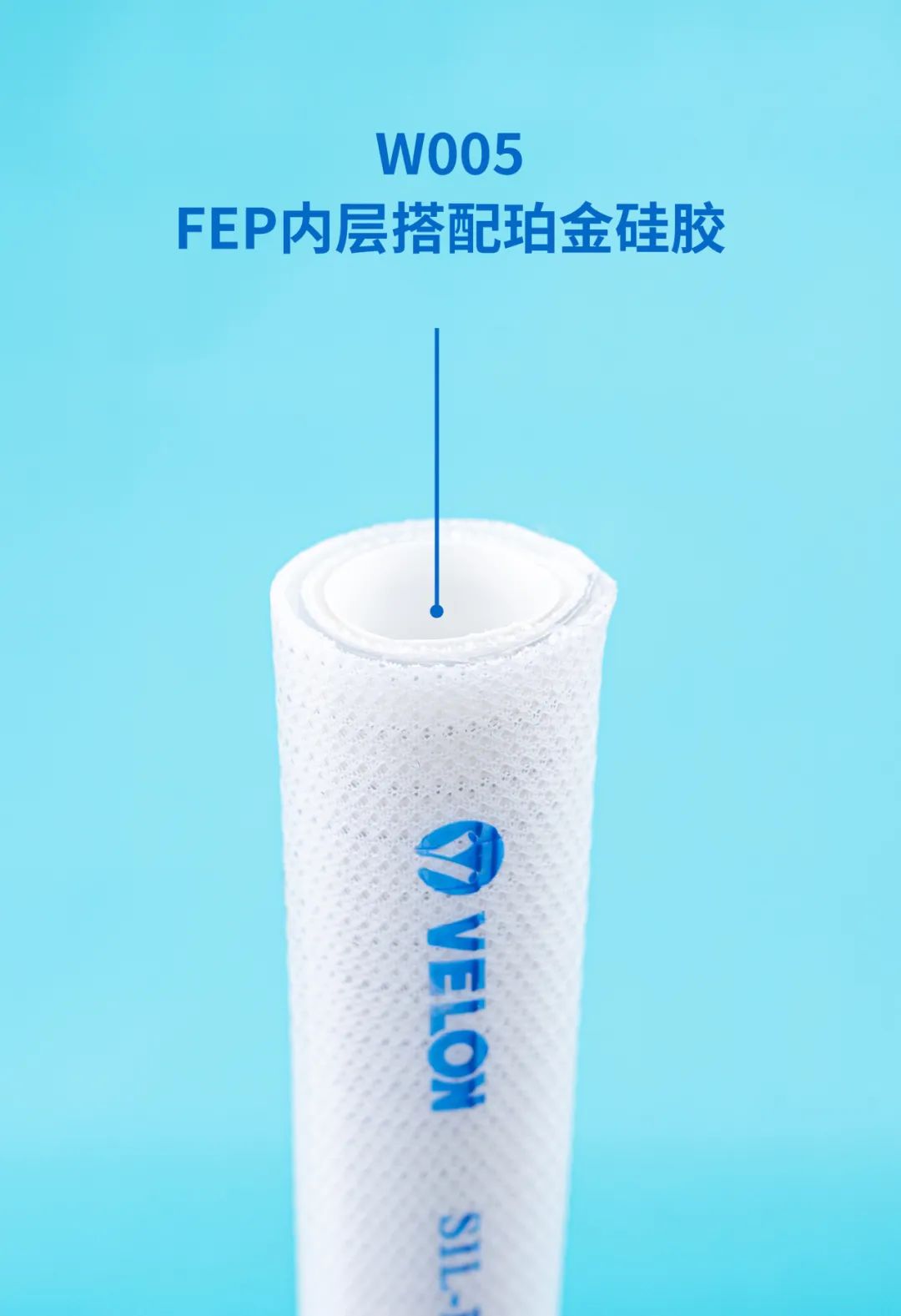 內(nèi)層采用了未藍(lán)新開發(fā)的高品質(zhì)FEP/氟硅膠,以滿足不同生產(chǎn)環(huán)境下的流體傳輸需求,為食品、醫(yī)藥行業(yè)提供更多樣的選擇。