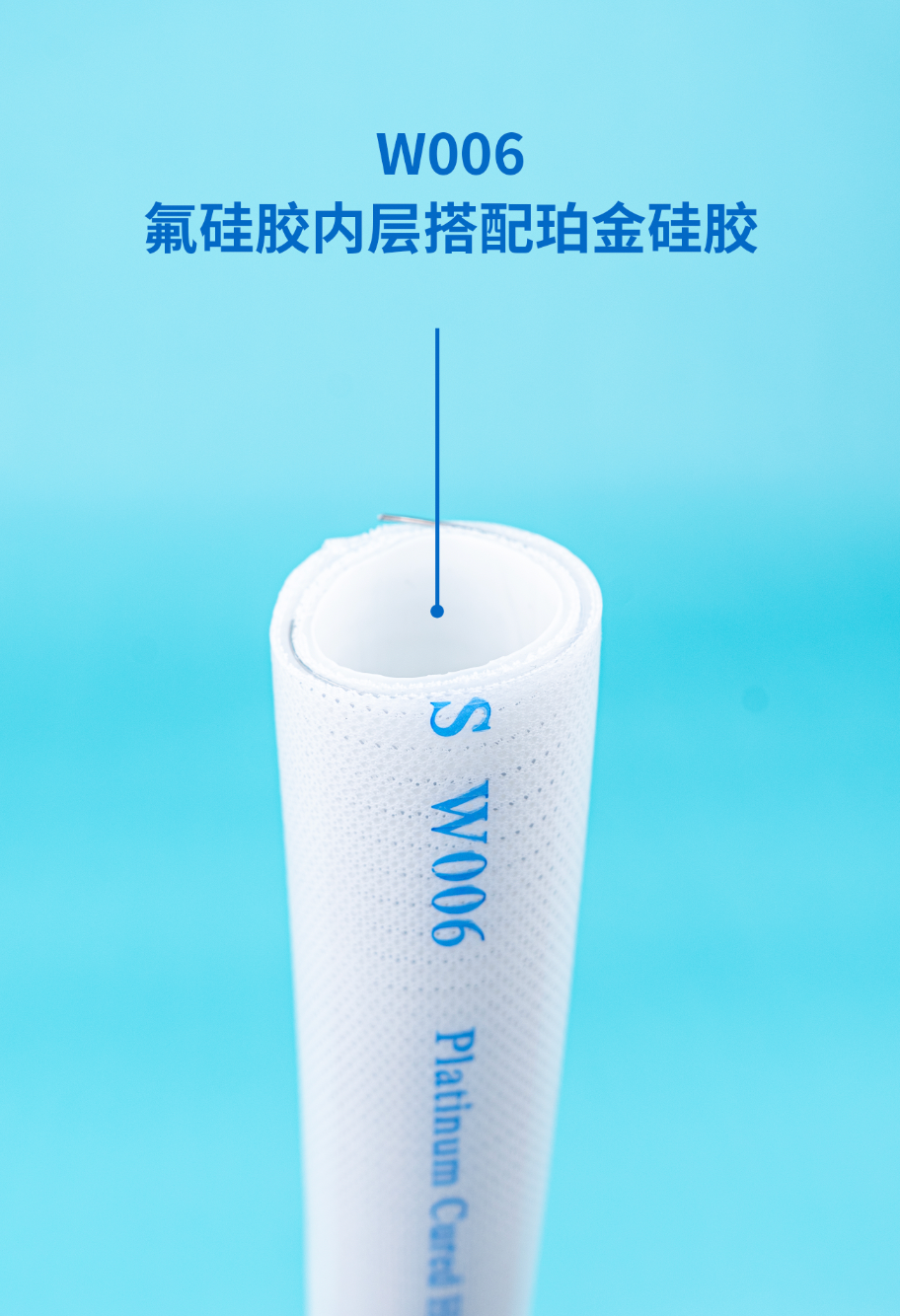 全新VELON硅膠管,與同系列明星產(chǎn)品 W001 一樣,主膠為鉑金硫化硅膠,選用四層絳綸織物編織增強(qiáng)結(jié)構(gòu),搭配不銹螺旋鋼絲增強(qiáng);