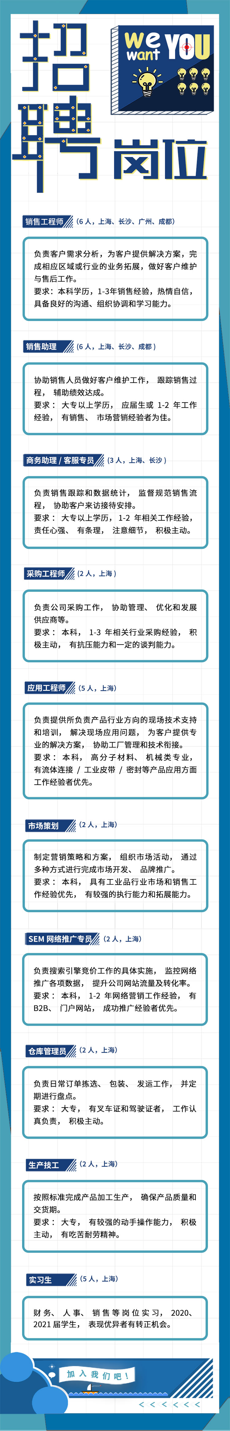 為適應(yīng)公司的快速發(fā)展,我們誠(chéng)邀積極進(jìn)取的您加入到我們這個(gè)充滿激情與活力的大家庭中,與我們共謀發(fā)展大計(jì),實(shí)現(xiàn)您的職業(yè)理想!