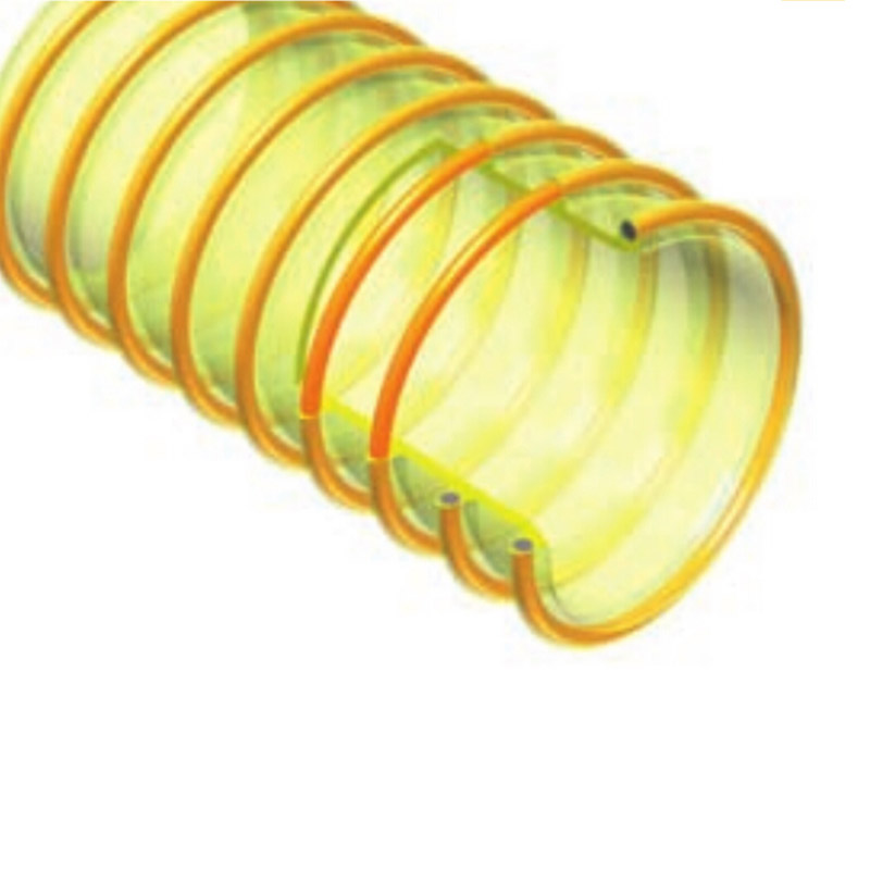 - 食品級聚醚型聚氨酯材質(zhì)管壁,帶鍍銅色包塑鋼絲加強筋,內(nèi)壁平滑
