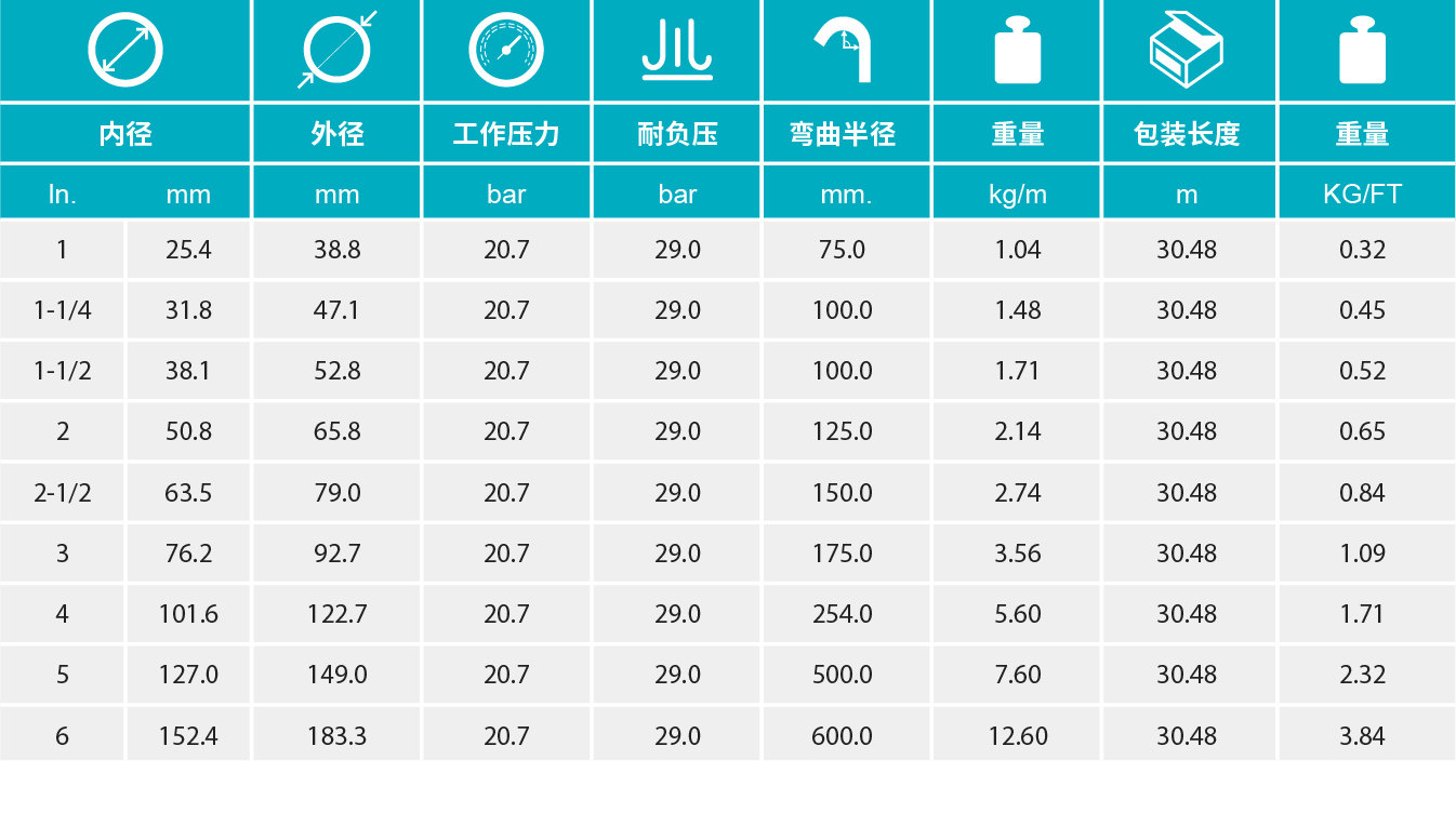 - 【增強(qiáng)層】多層螺旋纏繞的合成纖維,帶有金屬螺旋絲
