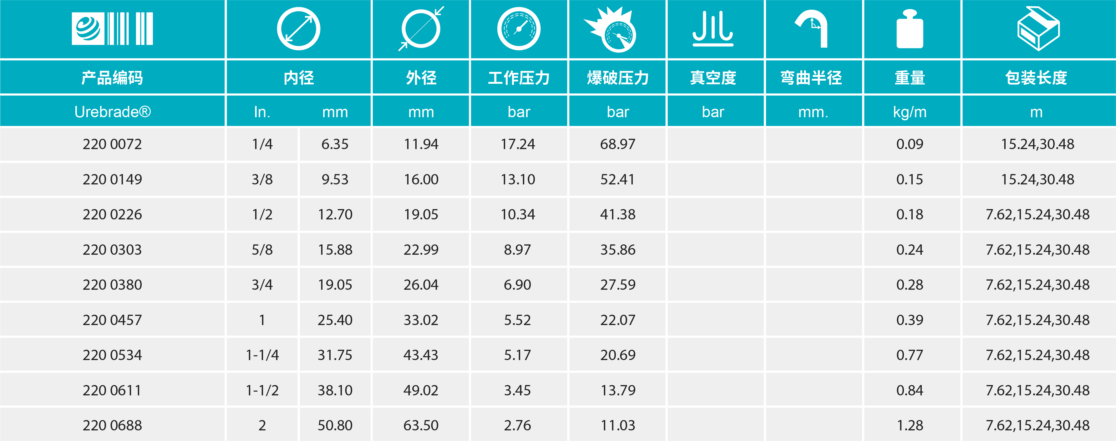 - 開(kāi)放式聚酯編織線植入彈性聚亞安酯軟管(又稱聚氨酯軟管)中 透明聚亞安酯被美國(guó)國(guó)家保健基金會(huì)(NSF 61)明確列出可用作食品級(jí)軟管、衛(wèi)生級(jí)軟管 由符合FDA標(biāo)準(zhǔn)的材料制成,可接觸液體食物和含脂肪食物表面,可用作耐油脂軟管 提供比非強(qiáng)化聚亞安脂軟管更大的抗壓能力 抗風(fēng)化、撕扯、壓縮和輻射,耐磨性能好,耐油、脂和燃油 溫度范圍廣:-90℉到175℉ 不含任何可能導(dǎo)致聚氨酯軟管硬化或流體污染的增塑劑 自然透明顏色允許對(duì)流體的視覺(jué)監(jiān)視