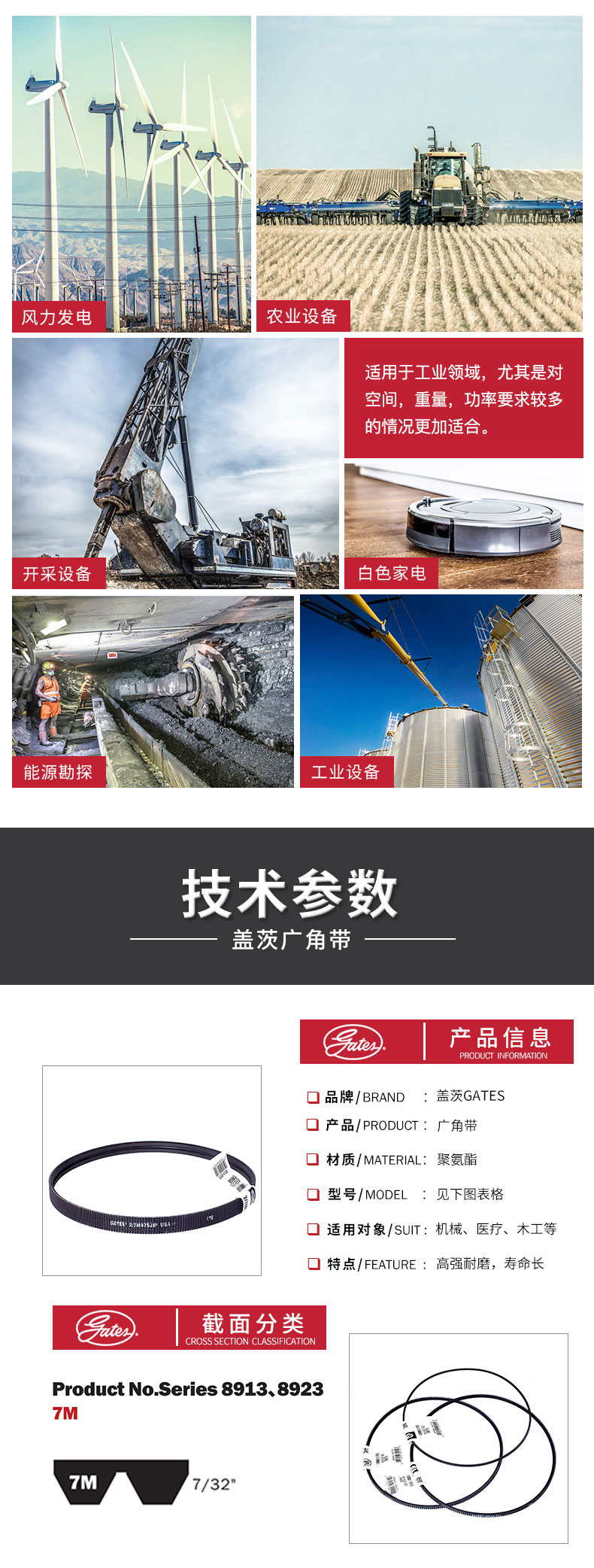 - Gates7M聯(lián)組廣角帶 聚氨酯聯(lián)組廣角帶 3/7M1950JB