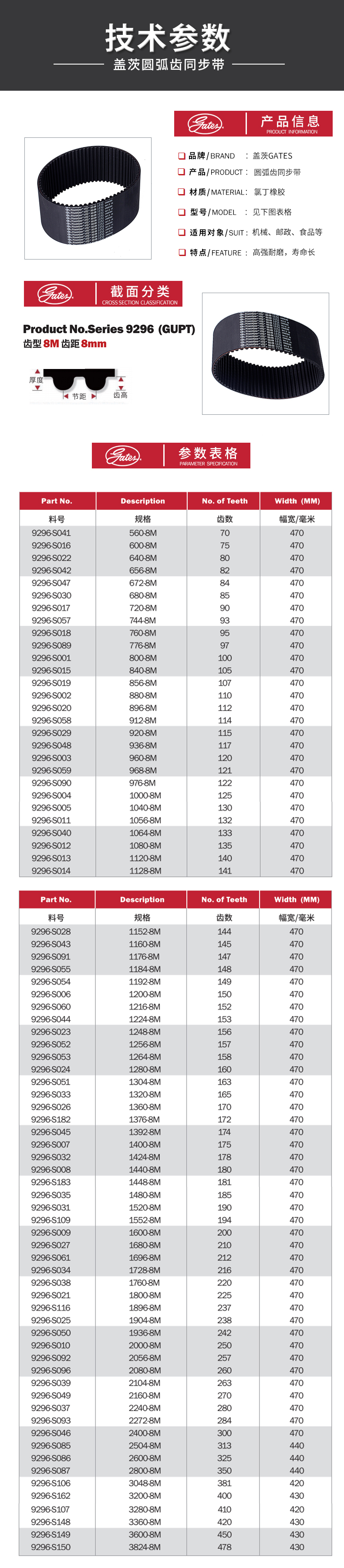 - 蓋茨圓弧齒同步帶 PowerGrip HTD 橡膠傳動(dòng)帶 工業(yè)皮帶 2056-8M