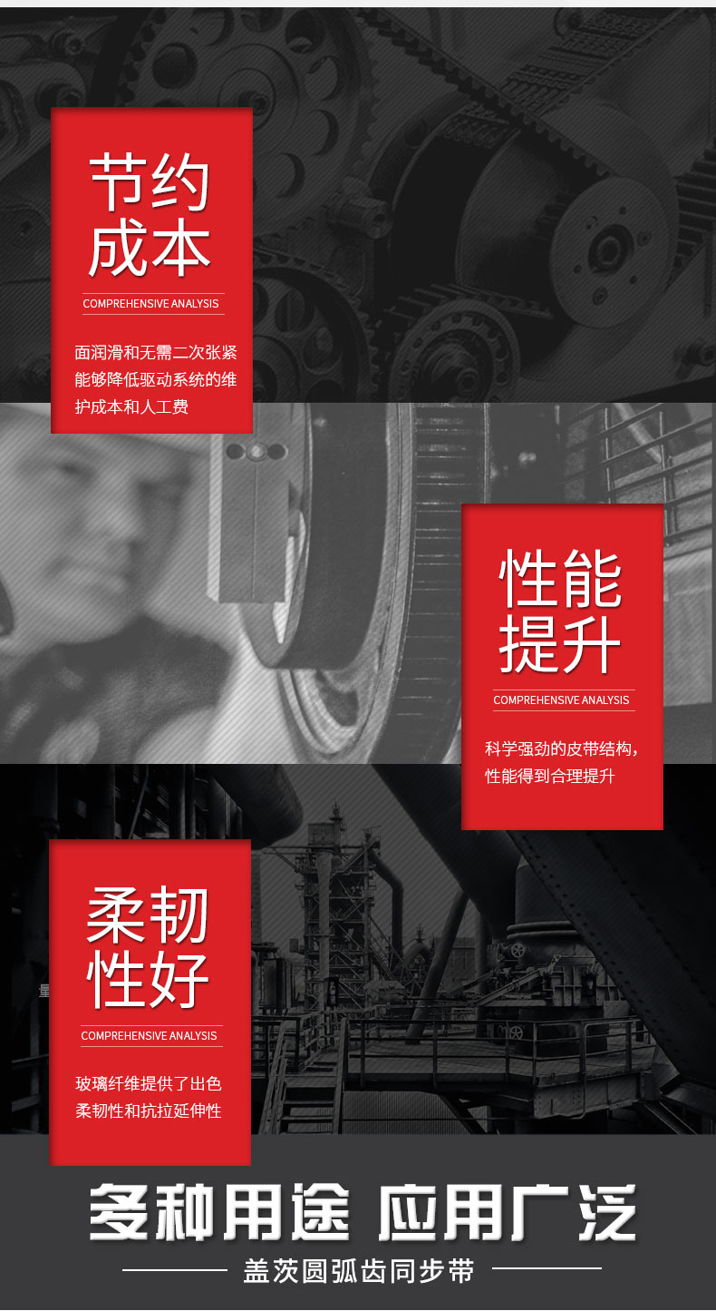 - 免潤(rùn)滑和無(wú)需二次張緊能夠降低在驅(qū)動(dòng)系統(tǒng)的維護(hù)成本和人工費(fèi)用。