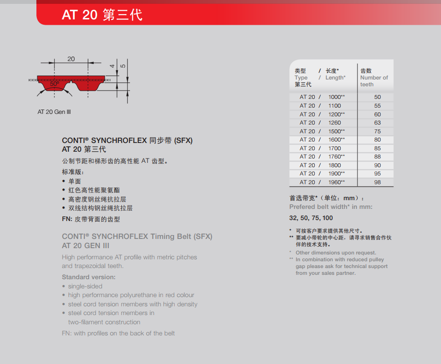 - 德國(guó)馬牌Continental 工業(yè)皮帶 聚氨酯同步帶 SYNCHROFLEX AT20 III 第三代