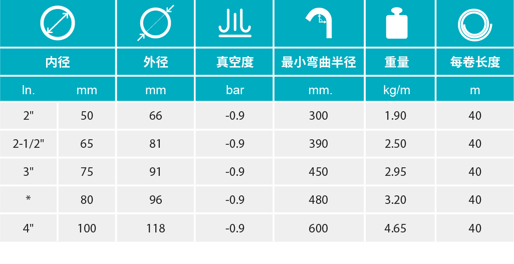 - 特別適用于運送面粉、食糖、咖啡豆、谷物、顆粒產(chǎn)品及其它粉狀產(chǎn)品。 可吸入和輸送用軟管,通常用于工業(yè)加工和輸送應(yīng)用。