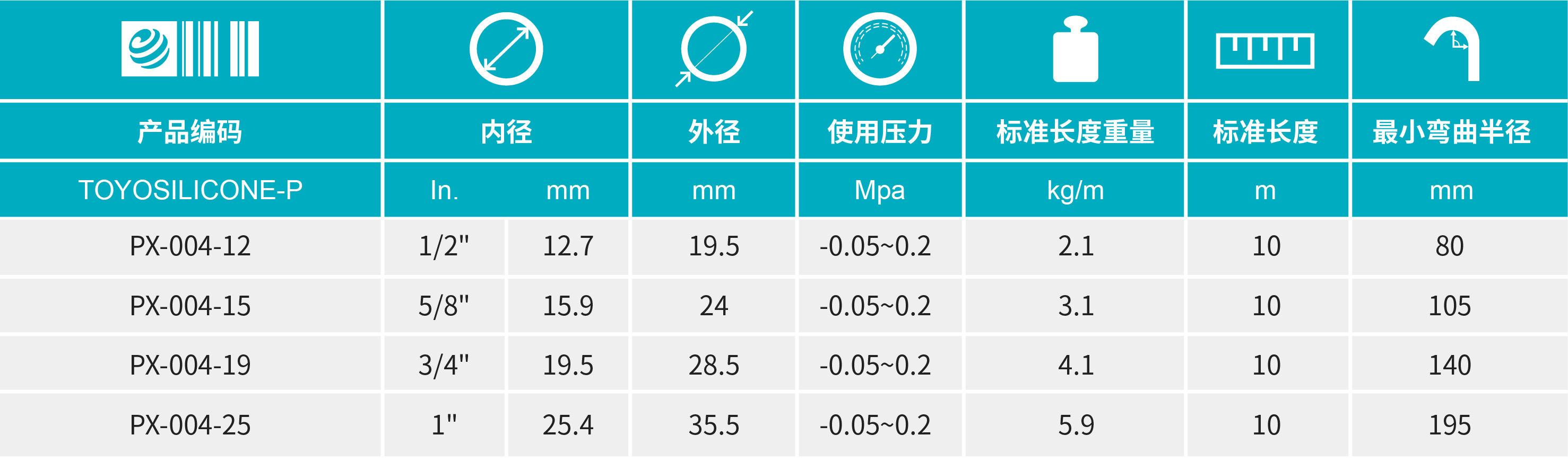 - 硅橡膠制的壓送、真空輸送兩用耐壓膠管,能充分發(fā)揮硅材料在100℃以內(nèi)的耐熱特性、低溶出性、絕緣性及無(wú)臭等特性,可用于食品/飲料行業(yè)、半導(dǎo)體行業(yè)及工業(yè)爐行業(yè)等的設(shè)備膠管配管。 帶有特殊PET樹(shù)脂線圈,與TOYOSILICONE-S相比,可杜絕生銹的困擾,并且柔軟度更高,適合用于狹窄場(chǎng)所的配管。有各種專用接頭,可實(shí)現(xiàn)更高的生產(chǎn)效率。可用作:工廠設(shè)備機(jī)械的配管用膠管(填充機(jī)、冷卻裝置、耐熱用配管等)。