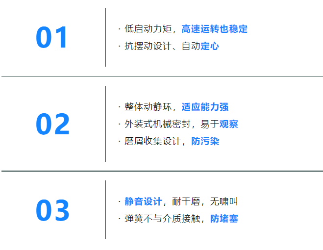 專業(yè)品質(zhì),精密打造。該機封采用整體式動靜環(huán)設(shè)計,選用優(yōu)質(zhì)材料加以特殊工藝制成,相較于傳統(tǒng)干摩擦機封具有更小的噪音,更低的泄漏率和更長的使用壽命!